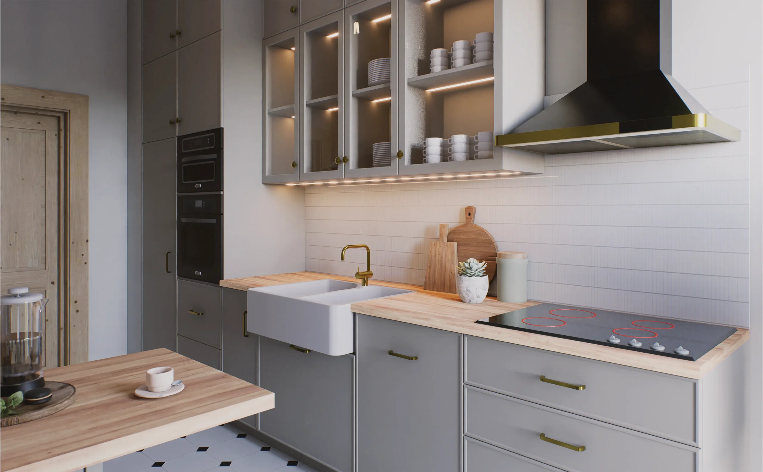 Rezultatem jest kuchnia, która nie tylko służy swoim podstawowym funkcjom, ale stanowi też spójną i elegancką przestrzeń będącą połączeniem przeszłości i teraźniejszości.